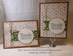 As promised, here are some more cards using the beautiful English Garden DSP. The basic idea for this card comes from Connie Collins. Thank you Connie! Her card uses Blackberry Bliss and a scalloped edge which is very pretty.